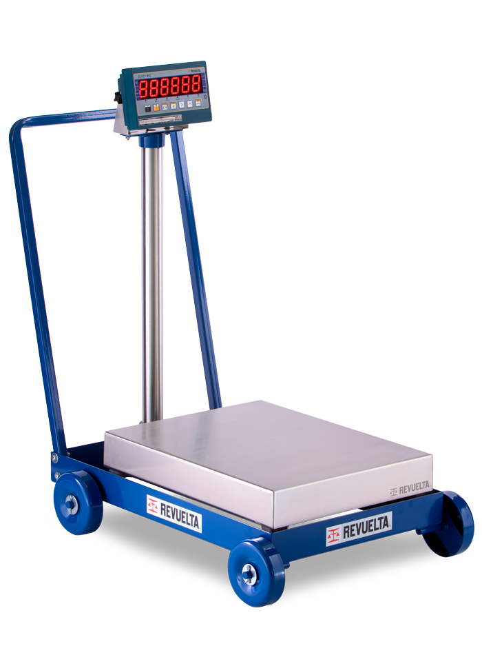 La báscula es independiente y desmontable del carro para usarla en forma estacionaria o para facilitar su mantenimiento y limpieza.