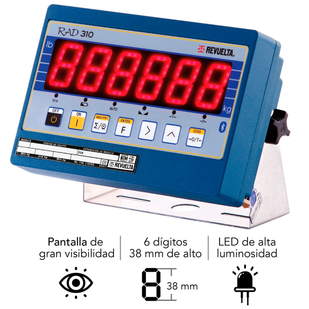 Pantalla de gran visibilidad, 6 dígitos de 38 mm de alto, LED de alta luminosidad