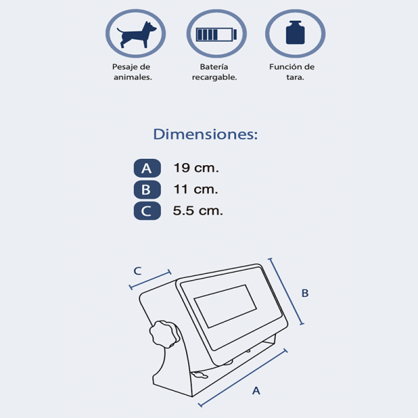 • Dimensiones: largo: 19 cm, ancho: 5.5 cm y alto: 11 cm