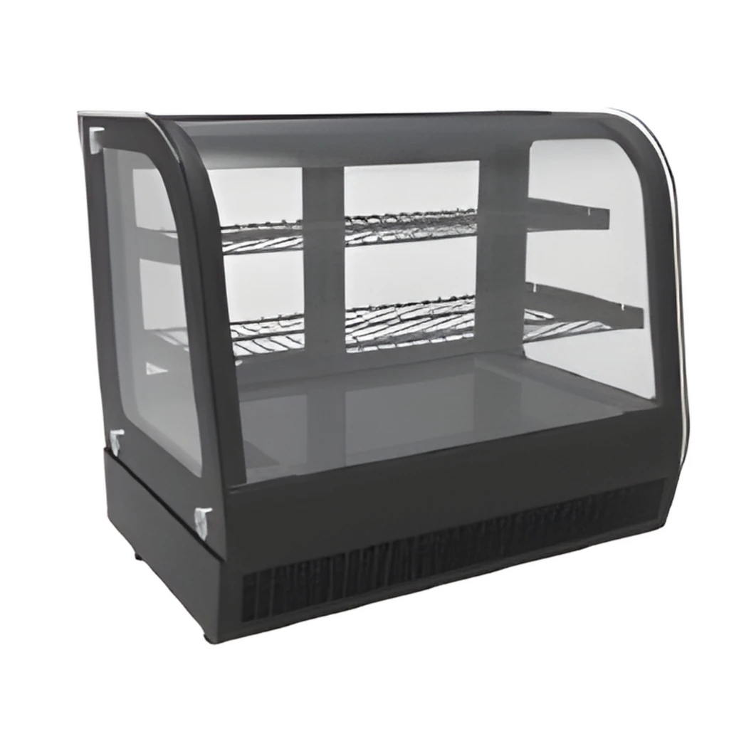 • Diseño vertical con puerta de vidrio y sobremostrador con vidrio curvo.